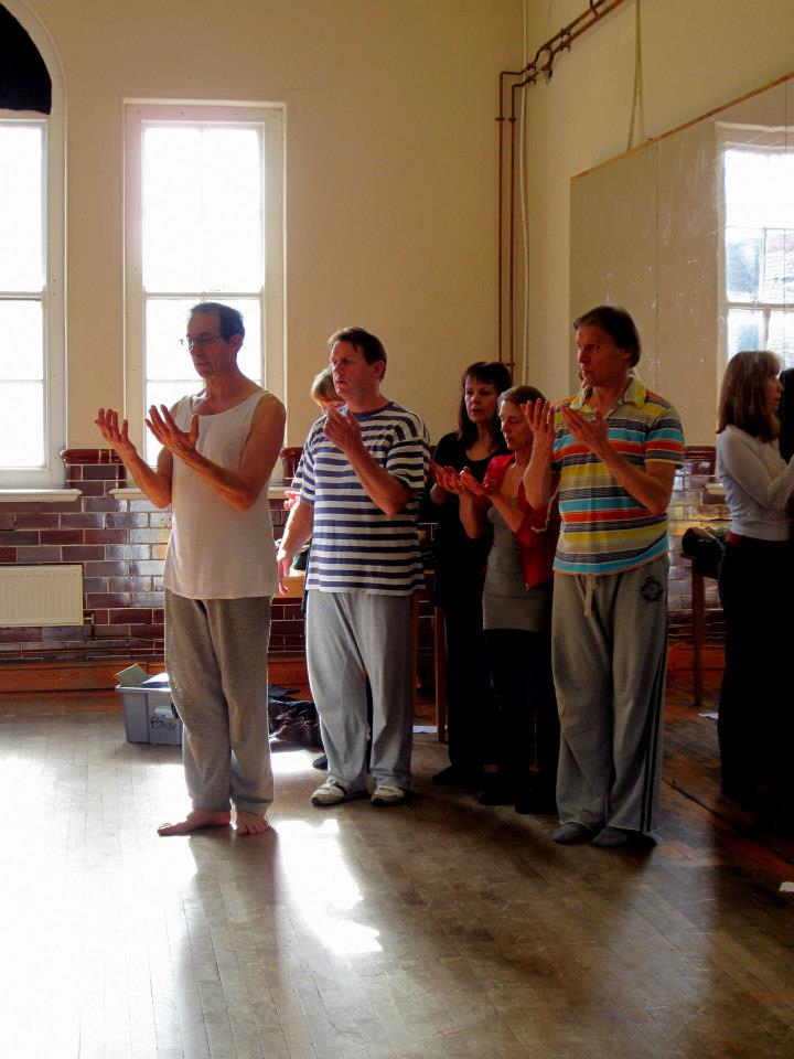 Janet Fieldsend develops the warm-up by giving physical images and ideas to stimulate free and expressive movement. This helps us connect with our own individual ways of moving and also pushes us to find new ways of moving.