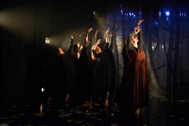 An evocative dance theatre piece using text and strong visual imagery.