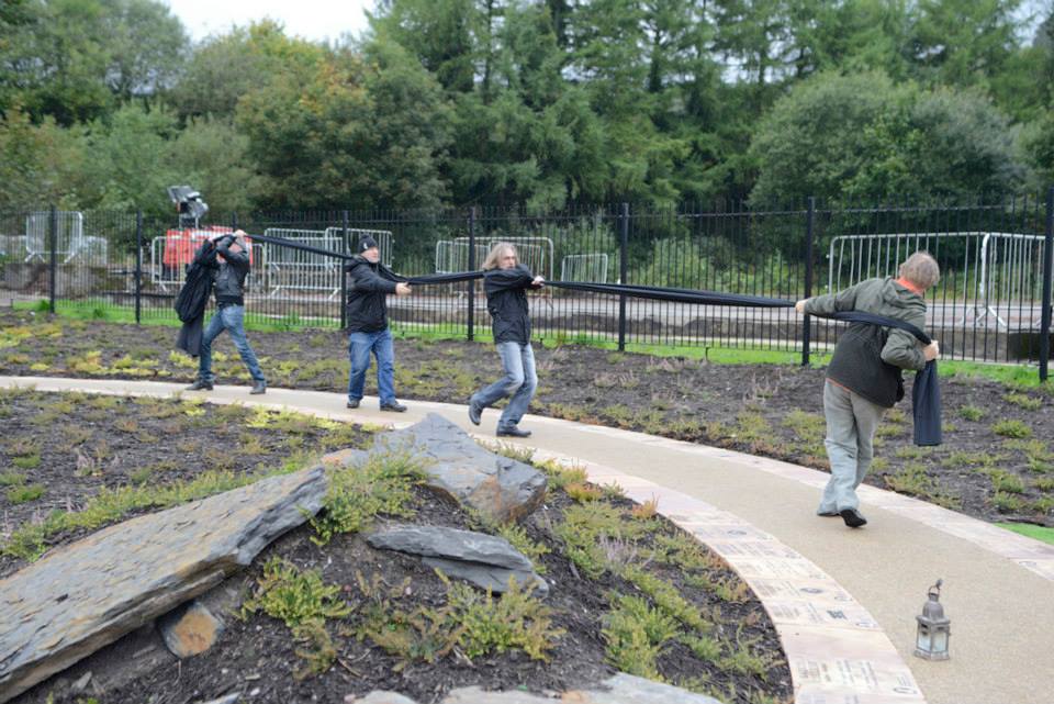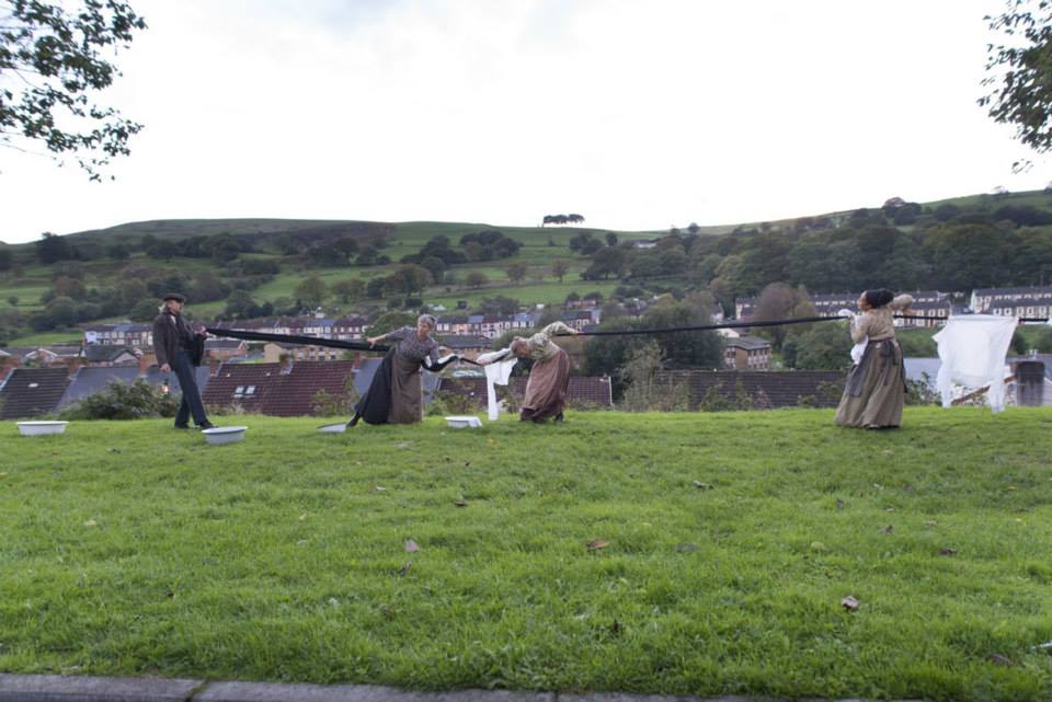 This work is a collaboration between Artistic Director and Choreographer Caroline Lamb and poet and playwright Patrick Jones. It marks the centenary of the tragic mining disaster in Senghenydd on October 14th, 1913. The performance moves around various onsite locations in Senghenydd, ending in the newly created memorial garden. It has a cast of 27 dancers, actors and musicians including members of the BTM brass band.